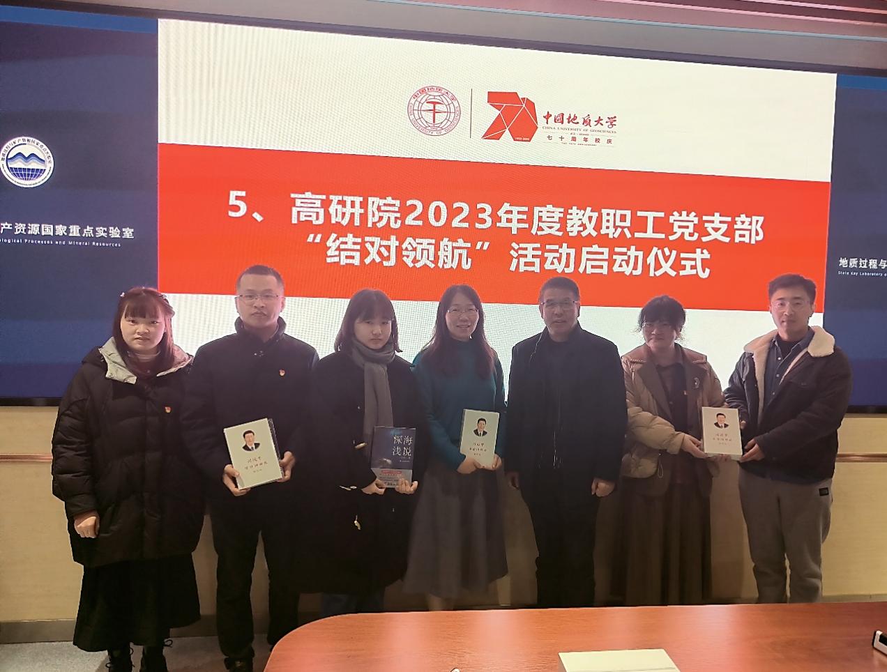 支部书记述职结束后,举行了高等研究院2023年度教职工党支部“结对领航”活动启动仪式,赵来时为完成“结对”的7组教工、学生党支部赠送了《习近平谈治国理政》、《深海浅说》书籍。(编辑 李雨竹 审稿 何建新)