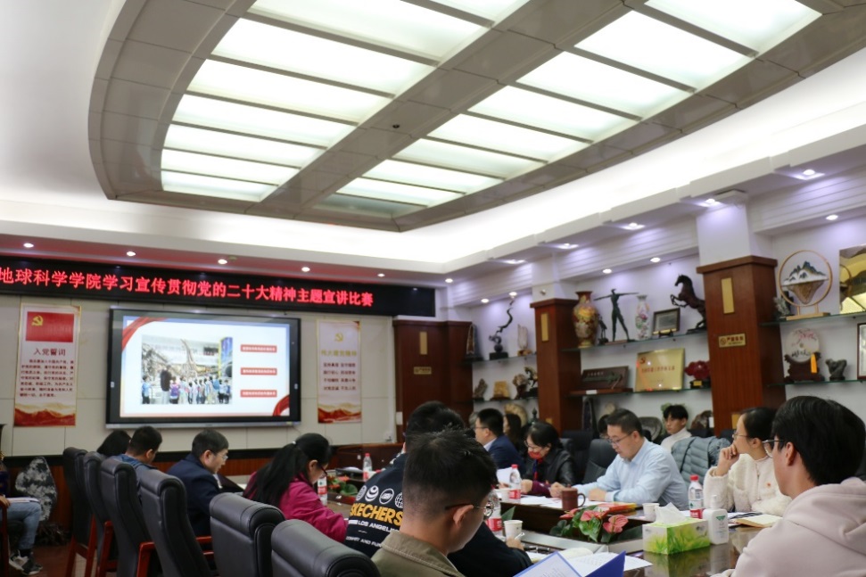 为深入学习宣传贯彻落实党的二十大精神,切实把思想和行动统一到党的二十大精神上来,引导广大学生党员坚定理想信念,汲取奋进新时代的强大力量,不懈拼搏进取,立志做有理想、敢担当、能吃苦、肯奋斗的新时代好青年,地球科学学院于11月22日下午在主楼地质斋举办学习宣传贯彻党的二十大精神主题宣讲比赛。