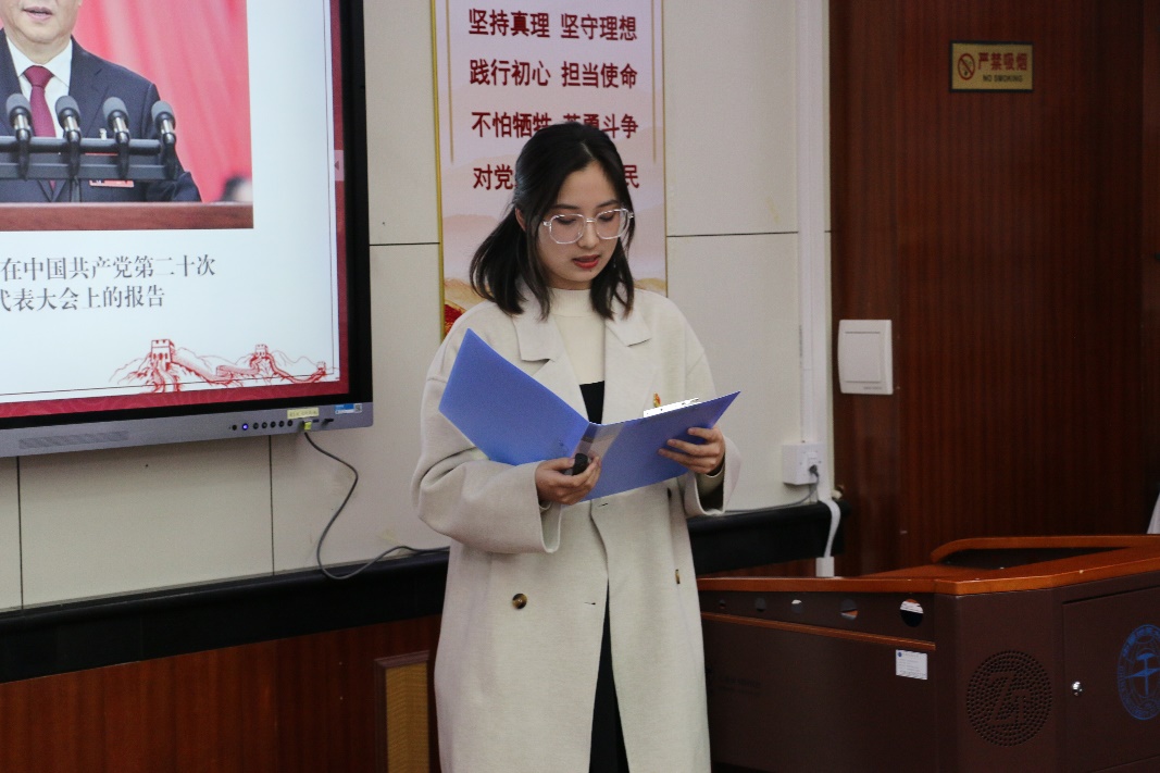 各学生党支部的党员们围绕“全面推进乡村振兴”“大力推进生态文明建设”“实施科教兴国战略”“中国式现代化”等党的二十大报告中的重要论述依次开展理论宣讲。