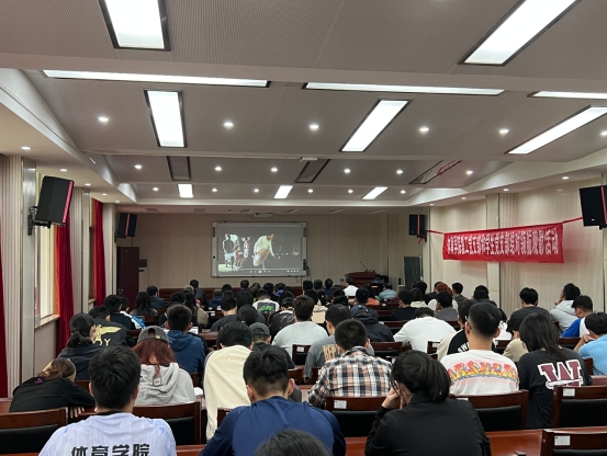 (通讯员:陈爽)为深入学习贯彻党的二十大精神,大兴调查研究之风,推动主题教育走深走实,同时加强教工党支部和学生党支部的交流与联系,2023年10月19日下午在体育馆三楼科报厅,体育学院党委组织教工党支部和学生党支部共同观影活动,观看重大党史题材电影《毛泽东在才溪》和《邓小平小道》。院领导班子成员、学校副处级专职组织员徐家忠和全体师生党员参加,活动由学院党委副书记朱军主持,学院党委书记庞岚和学校副处级专职组织员徐家忠在开映前分别讲话。