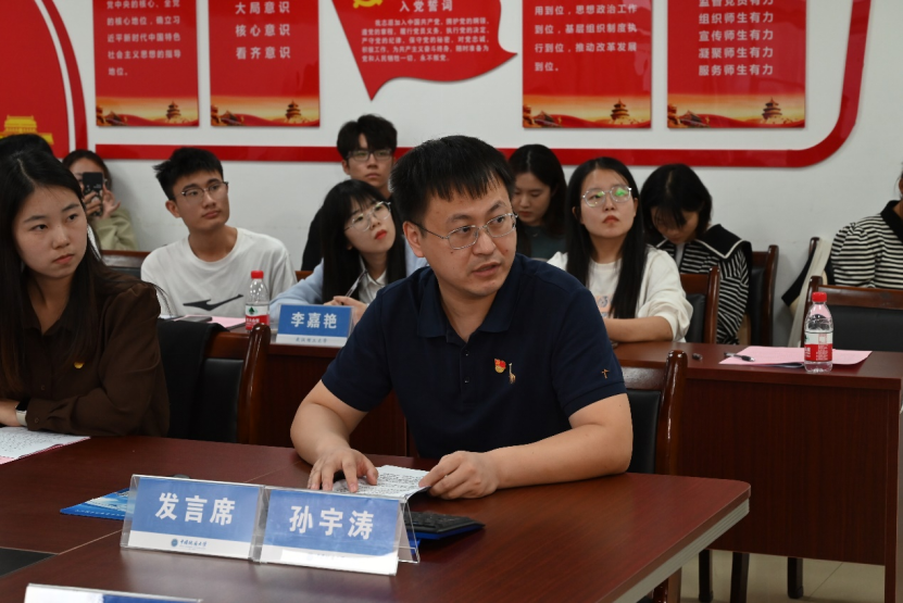 数学与物理学院数学与应用数学专业本科生党支部书记孙宇涛作题为《以学铸魂 以学增智 以学促干》的学生党支部建设经验分享,详细介绍党支部开展“党建+专业志愿服务”特色品牌工作创建思路和成效。