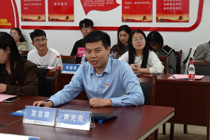 武汉工程大学电气信息学院电气工程研究生党支部书记黄光亮总结发言。他希望以此次党建联学为契机,进一步学深悟透习近平新时代中国特色社会主义思想,筑牢思想根基,坚持学思用贯通、知信行统一,用党的创新理论武装头脑指导实践,全体学生党员要肩负起新时代的历史使命和责任担当,立志做有理想、敢担当、能吃苦、肯奋斗的新时代好青年,以青年奋斗助推中华民族伟大复兴。