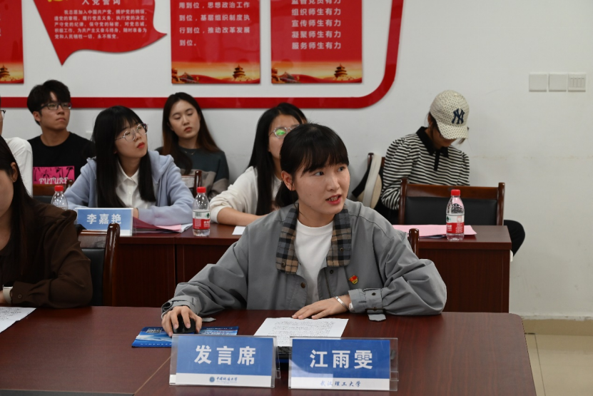 武汉理工大学马克思主义学院研究生讲师团党支部江雨雯作题为《以“七个聚焦”打造“七度”青马工程建设高地》汇报,详细介绍了党支部创建“湖北省研究生样板党支部”的经验和成绩。