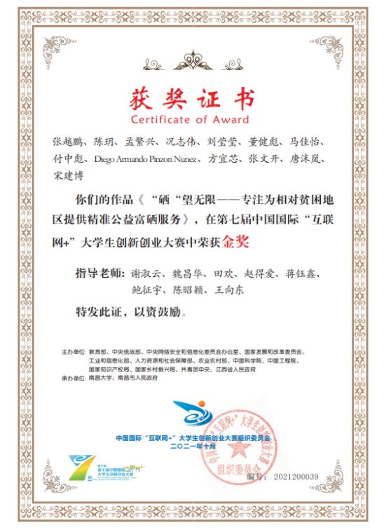 图5第七届中国国际“互联网+”大学生创新创业大赛金奖(2021年)