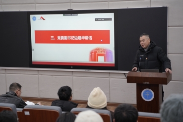 会议最后,晋曦进行专题党课讲授。首先,他全面讲述了习近平文化思想的主要内容,从“坚定文化自信”“秉持开放包容”以及“坚持守正创新”三大主题展开论述,强调连续性、创新性、统一性、包容性、和平性是文化自信根本基石;其次结合自己学习习近平文化思想体会,为同学们分享“马克思主义基本原理同中国具体实际相结合、同中华优秀传统文化相结合”的实践意义,谈到自己的认识和想法,鼓励艺术与传媒学院的同学们提高对文化和美的鉴赏和竞争力;最后对全体学生党员提出两点要求,一要把学习贯彻习近平新时代中国特色社会主义思想主题教育走深走实,增强党员意识,二要结合同学们所学专业的发展方向,提高真本领。