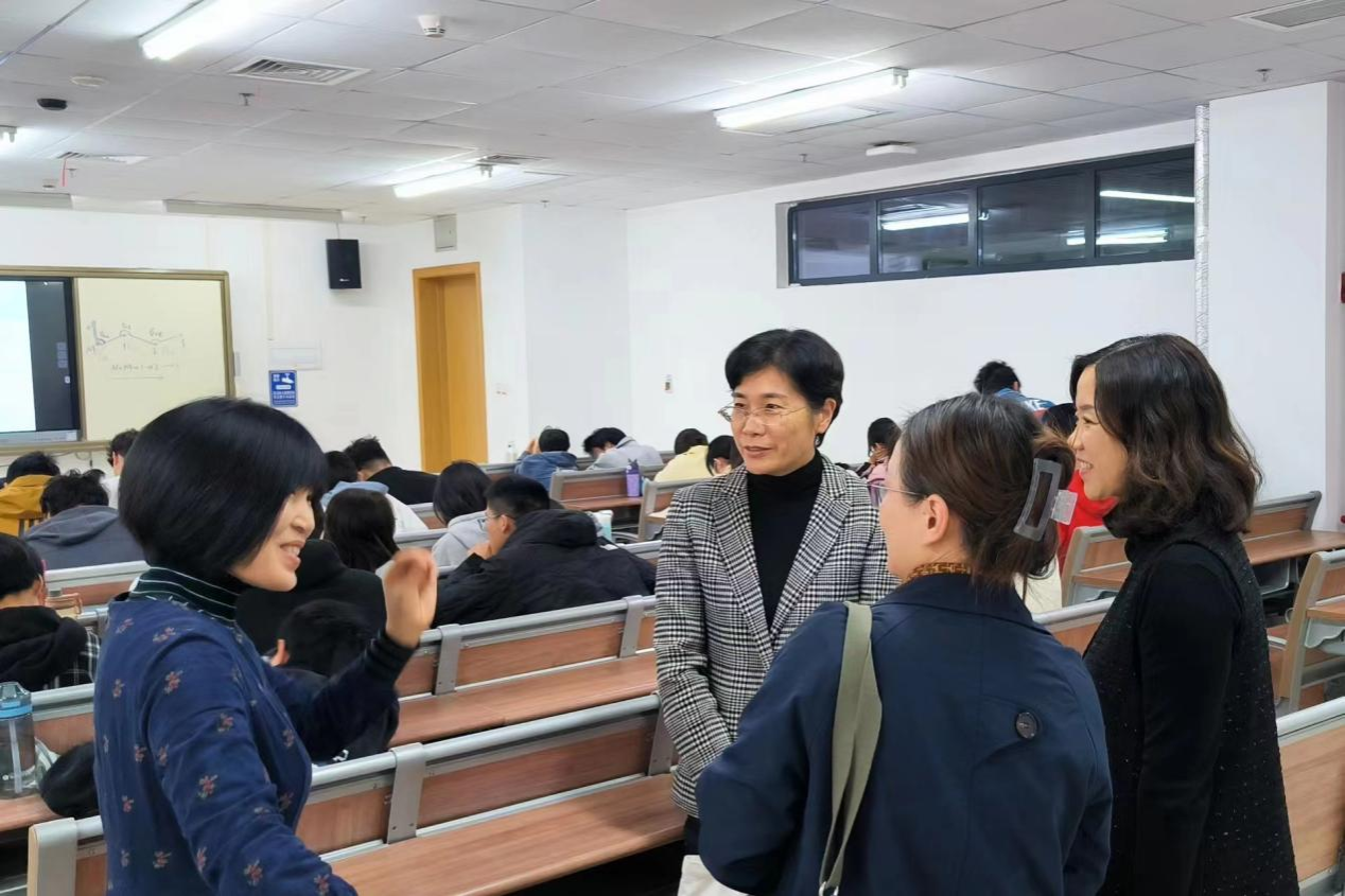 早上八点,黄晓玫一行来到公教1-416教室,坐在教室后排与2022级测绘专业的本科生同学们一同听取了梁新美副教授讲授的《数字地形测量学》,深入了解我院教师教学水平和课堂教学动态。梁教授授课深入浅出,课堂氛围活泼,同学们以饱满的精神状态投入学习。课后,黄晓玫与师生们进行了交流,对教师的教学状况以及学生的听课状态给予肯定,对改进教学方法、提高课堂教学质量、调动课堂气氛等方面提出指导性的意见和建议。未来城校区管理办公室主任王文起、学校办公室主任张玮、本科生院副院长肖梦琼,学院党委书记孙莉、测绘遥感系副主任黄海军陪同听课。