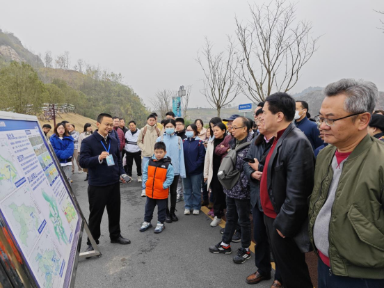 矿区负责人向学院老师讲解矿区在山体修复、水体修复、农田修复、森林修复、湿地修复等方面取得的成果,以及产生的经济效益、社会效益和生态效益,探索“生态+文化+旅游+产业”的乡村振兴路径,展示了践行习近平生态文明思想的巨大成就。
