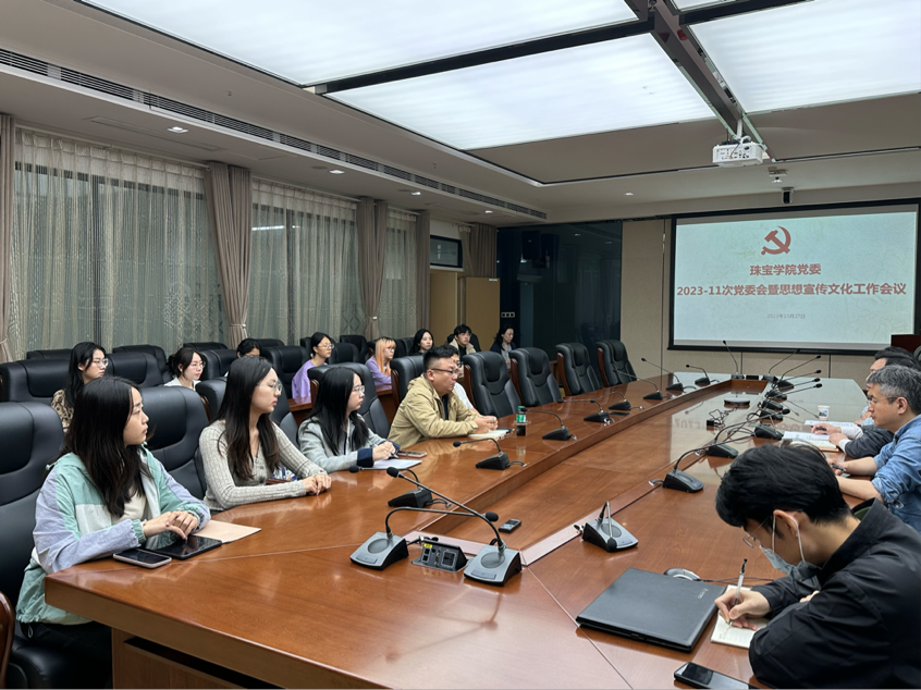 (通讯员 顿瑾涵 曹懿 摄影 顿瑾涵)10月27日上午,珠宝学院在珠宝楼918会议室召开党委扩大会,传达学习习近平总书记对宣传思想文化工作的重要指示精神,深入学习领会习近平文化思想,研究布置珠宝学院意识形态工作和宣传工作队伍建设。校党委宣传部副部长尚东光,院党委委员出席会议,院党政联席会议成员、各党支部宣传委员以及职教中心、科普中心宣传工作全体师生参加会议,会议由院党委书记薛保山主持。