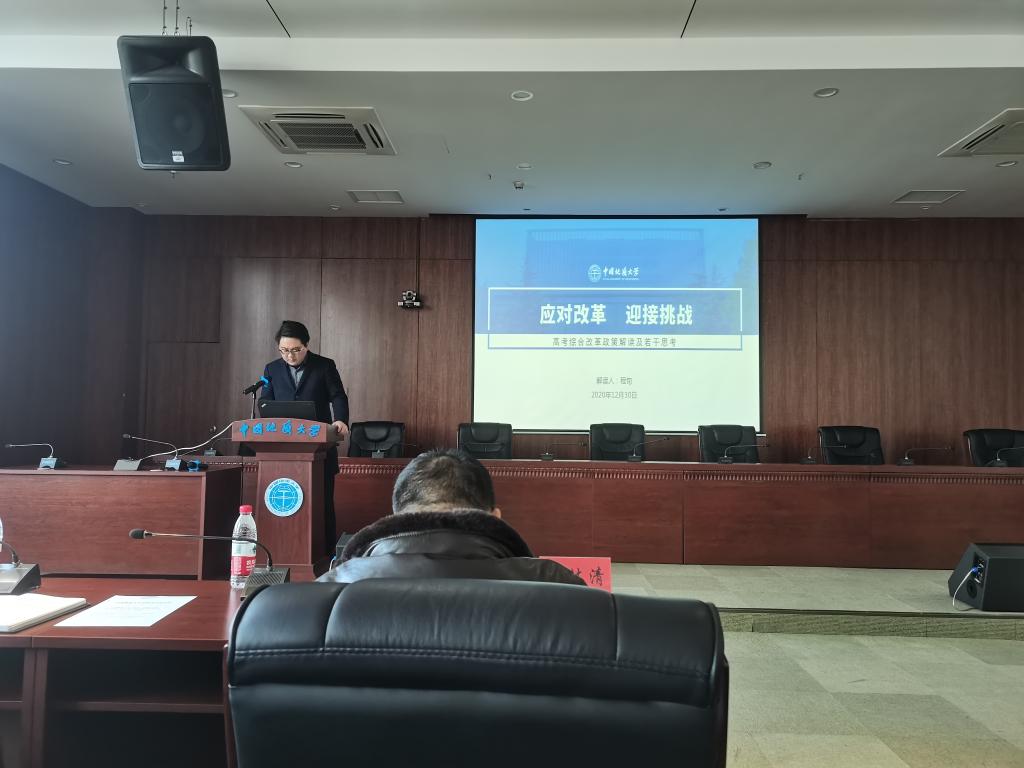 学生就业创业指导处处长严嘉汇报了2020届毕业生就业进展和2021届毕业生“三喜三忧”的就业形势,并详细解读学校《2021届毕业生就业促进行动工作方案》,强调落实落细、全员联动。本科生招生注册办公室程旬重点解读了《湖北省2021年普通高校考试招生和录取工作实施方案》,明确传达新高考的招生计划编制、投档录取控制分数线等重要信息。校长办公室副主任尚东光传达了上级相关文件精神,学工处副处长苏洪涛重点布置了2021年寒假学生教育管理等相关工作。