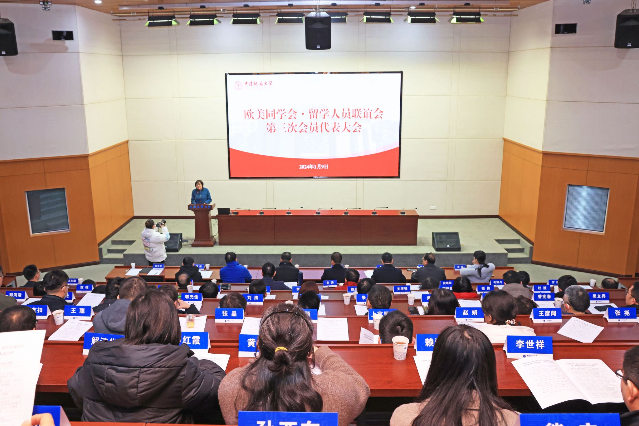 地大新闻网讯 (通讯员 江丰伟 王艳平 摄影 孙彦钦)1月9日,我校欧美同学会·留学人员联谊会(下文简称“欧美同学会”)召开第三次会员代表大会,选举产生第三届理事会会长、副会长及理事。湖北省欧美同学会专职副会长刘来,我校党委副书记王甫,校党委常委、统战部部长、组织部部长陈文武出席大会。陈文武主持大会。