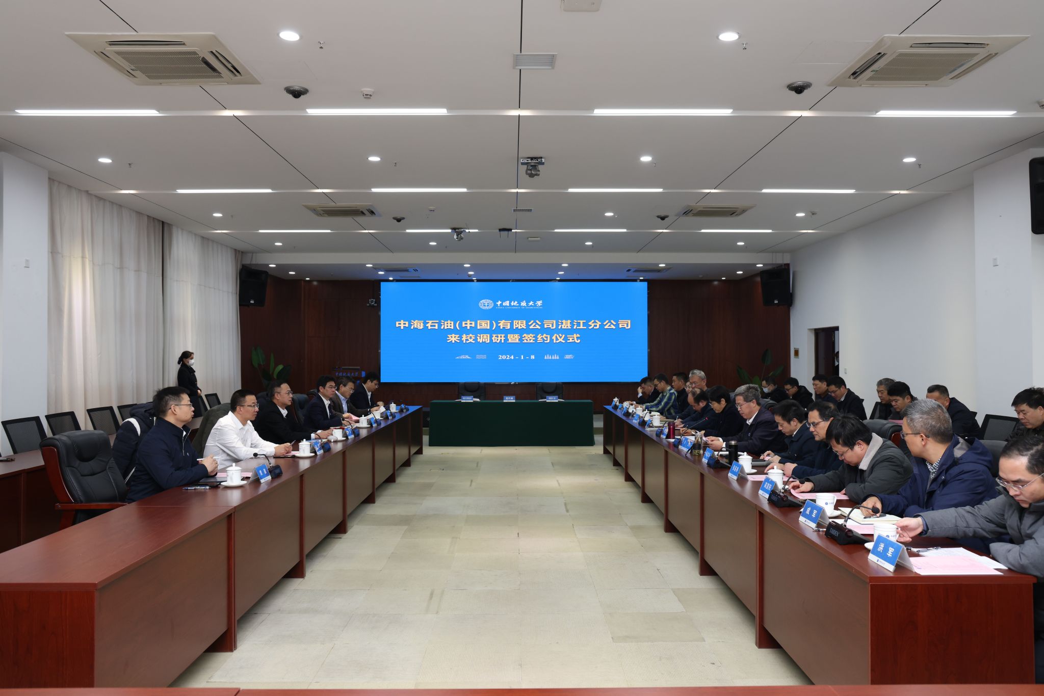 地大新闻网讯(记者 焦思勤)1月8日,我校与中海石油(中国)有限公司湛江分公司签署战略合作框架协议。校党委书记黄晓玫,副校长王华,中海石油(中国)有限公司湛江分公司党委书记、总经理李茂及相关单位负责人参加签约仪式。王华主持会议。