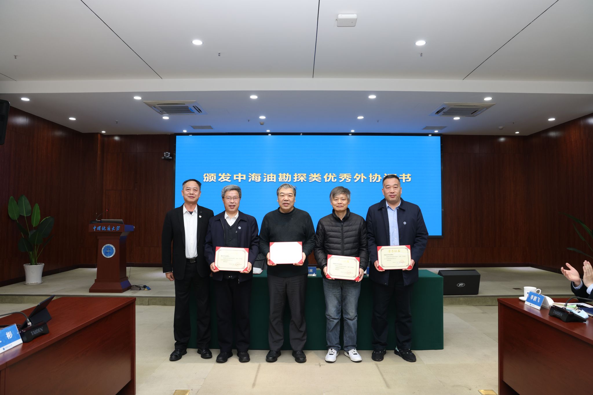 李茂为我校科研团队颁发中海油勘探类优秀外协证书。