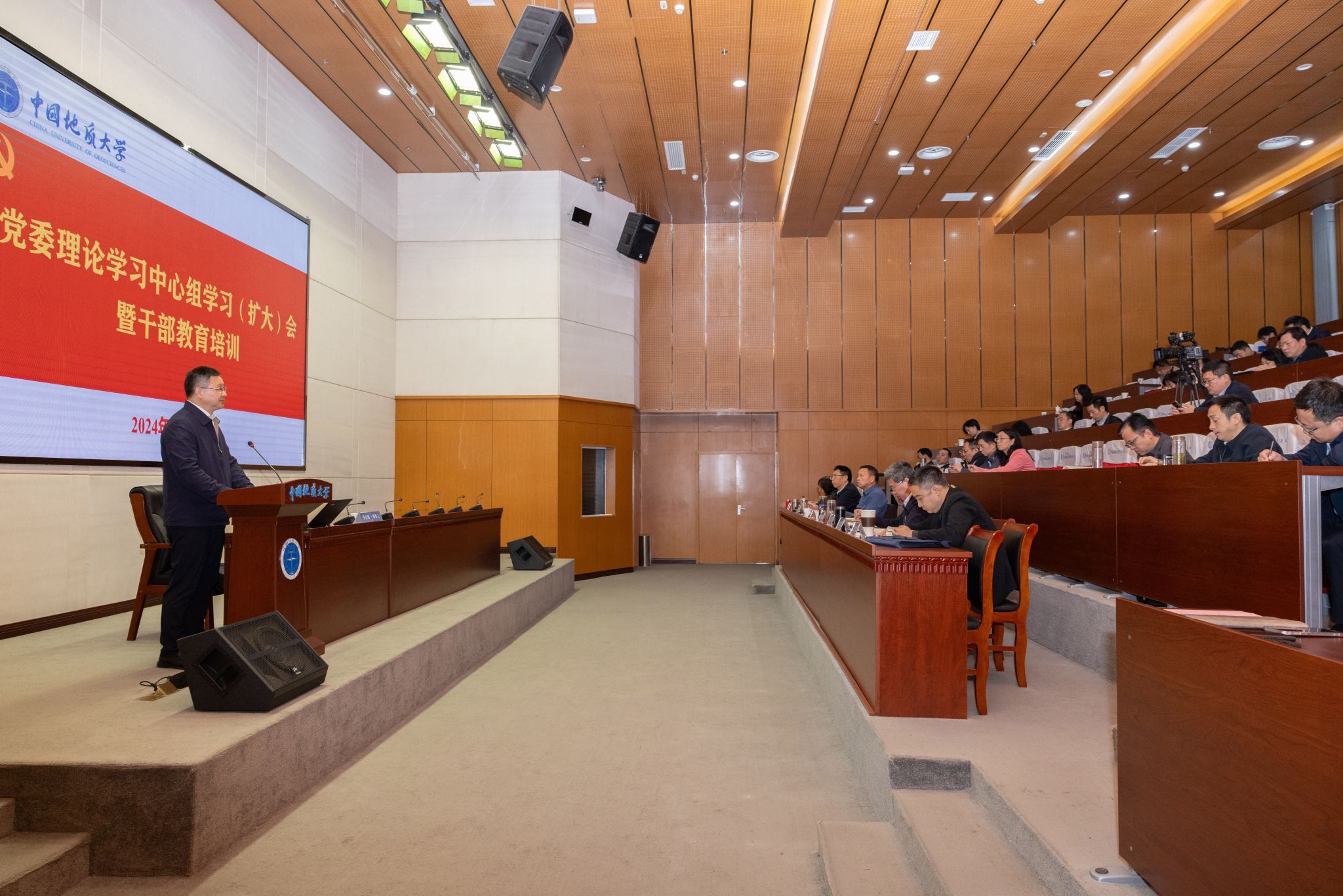 11月11日,我校在南望山校区东区综合楼A0116会议室召开党委理论学习中心组学习(扩大)会,深入学习习近平总书记考察湖北重要讲话精神和《教育强国建设规划纲要》(以下简称“《纲要》”)。党委理论学习中心组成员和全体中层正职干部参加会议。党委书记刘杰主持会议。
