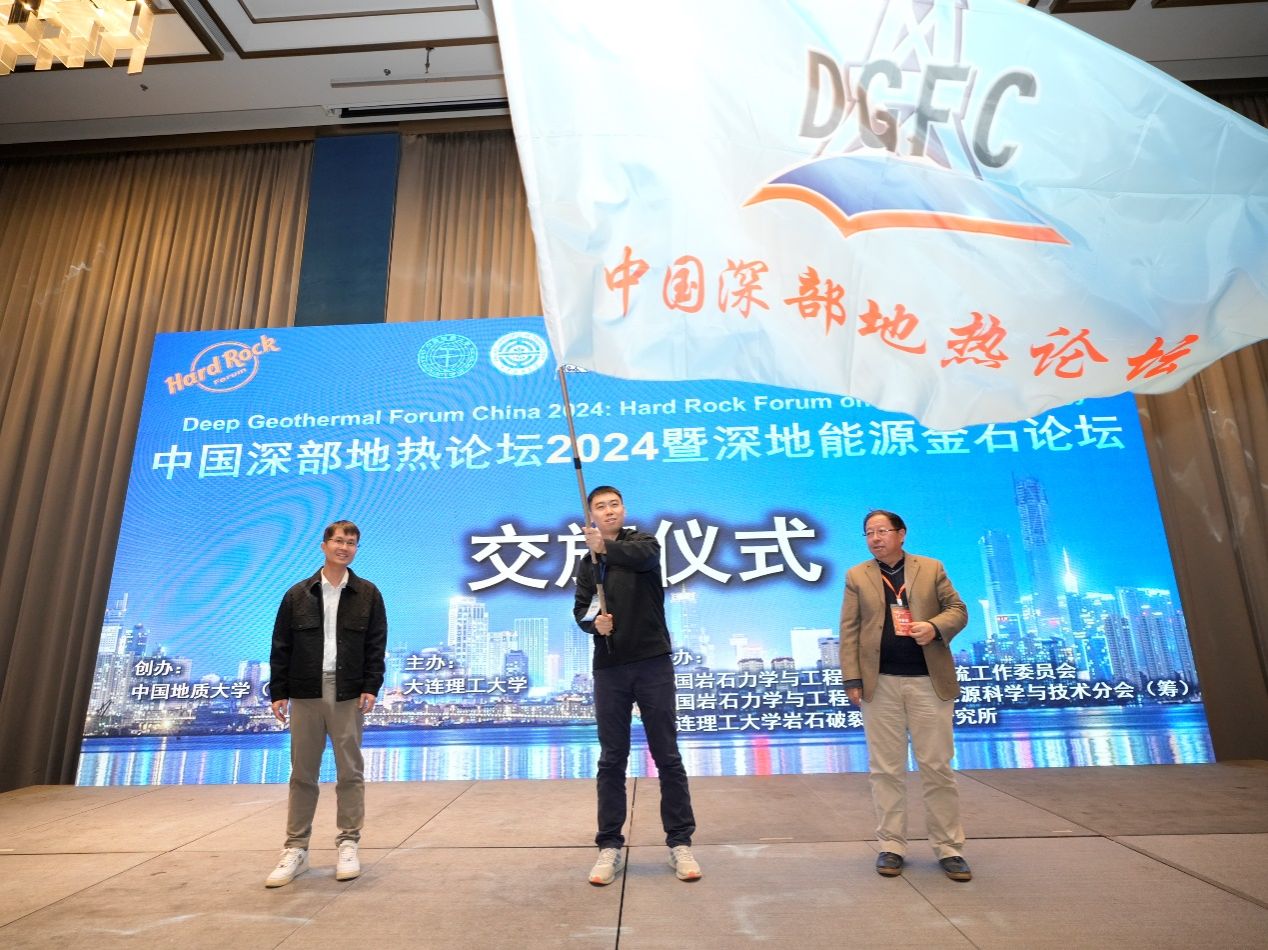 论坛闭幕式上,专家代表应邀给青年论坛口头报告的获奖者颁奖,中国深部地热论坛会旗传递至下一届主办单位重庆大学,由陈结教授作为代表接旗。