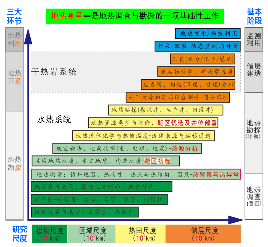 该研究方向主要研究地热资源构造-热背景及主要控制条件研究。该方向的学科定位是研究不同地质单元地壳热结构、地热分布及其规律,查明成热区带分布特点,解析不同地区、不同尺度成热及地热异常形成的机制与背景。通过多学科(水文地质学、岩石学及火山学、构造地质学、地球物理学、岩石流变学、地热地质学、流体地球化学等)集成研究厘清地热资源形成机制;开展地热异常的形成、赋存、传导与释放的地质过程及其制约因素研究,明确地热异常和地热资源形成的构造-热背景,为地热资源勘探靶区及远景预测区圈定提供理论指导。