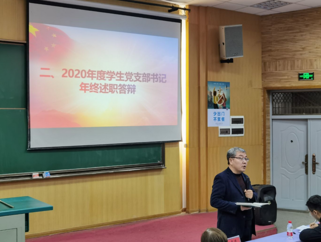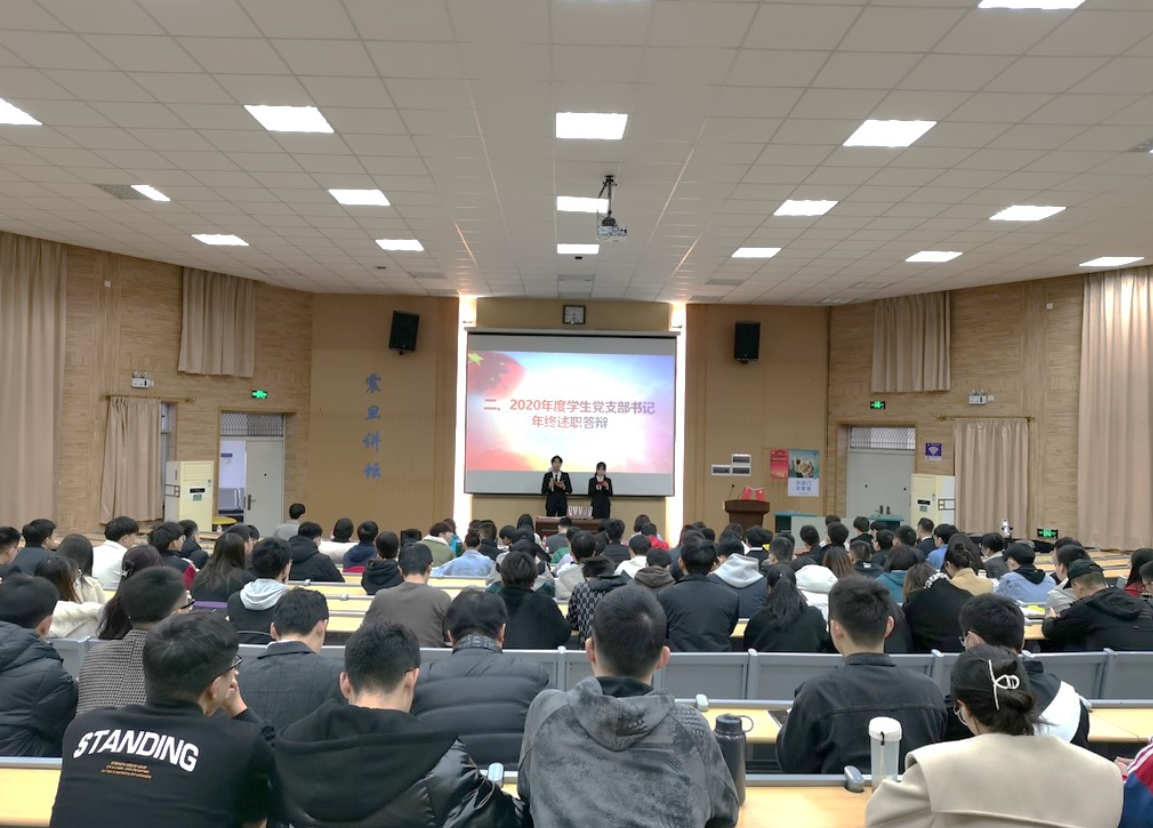 大会首先由各党支部书记作2020年度学生党支部工作总结汇报。报告内容从支部建设、党员教育发展、特色活动、不足和展望四个方面进行陈述。在支部建设中,支部书记鼓励支部成员讲党课,积极开展支部组织生活会,并进行党员批评与自我批评等。在党员教育发展中,严谨认真。在疫情形势下,通过线上微党课、学习强国、青年大学习等手段开展党员教育,贯彻落实“以党建带动团建,班团一体化建设”,让支部成员更好将党建任务落实,并常与支部成员谈话谈心以了解他们的情况等。在各党支部的特色工作中,出现了一些新颖的活动:“冬天的第一本书”,参观“人民至上,生命至上”主题抗疫展览,学习不惧困难、团结一致的精神,开展个人演讲等。最后,各党支部提出了现有的不足与在2021年里的改进措施。