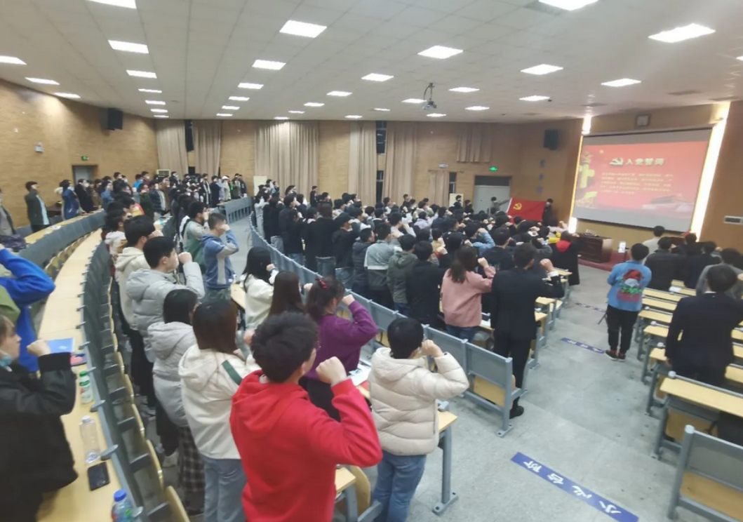 2020年学院共发展预备党员167人,工程学院分党校秘书王焱同志带领同志们进行集体宣誓。