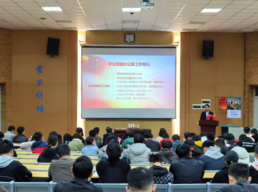 随后,工程学院第八届学生党建办公室副主任寇桓嘉汇报2020年度学生党建办公室工作情况。寇桓嘉向参会同志们详细汇报了工程学院2020年度党员考察、培养及发展转正工作,全年协助院党委开设入党积极分子培训班三期,培养入党积极分子390人,开设发展对象培训班五期,发展党员167人,共有2批党员转正,转正党员128人,完成外校转入42名学生党员的认定工作。另外还介绍了组织生活巡视情况、全体学生党员信息库建立、《工程学院学生党建工作指导》(第四版)编写等方面内容,最后表示要将学生党建办公室打造为服务院党委和学生党支部的“老黄牛”,以优异成绩向党的百岁华诞献礼。