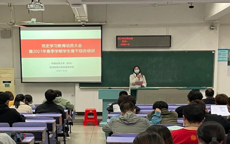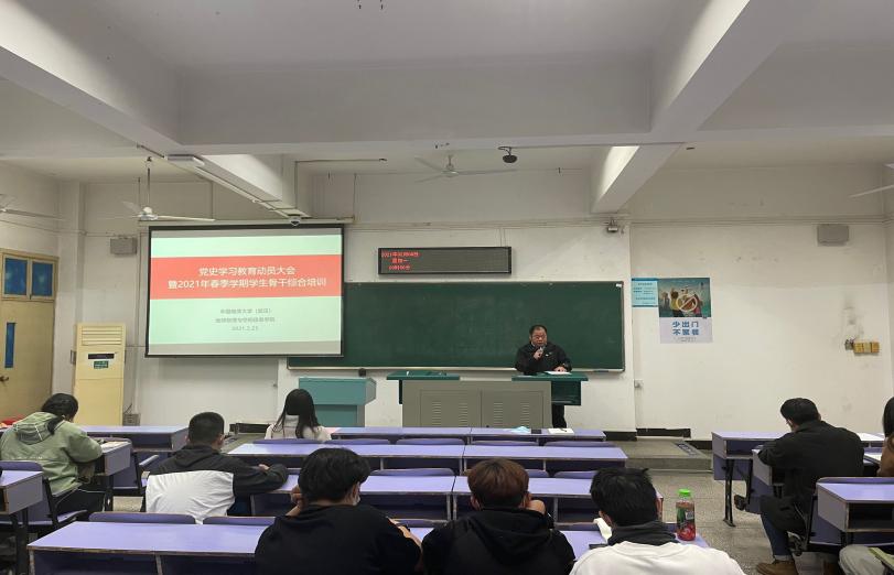 2021年3月25日晚,地空学院在教三楼306教室召开党史学习教育动员大会暨2021年春季学期学生骨干综合培训。学院党委副书记姜明敏、辅导员刘彦娇参加会议。大会邀请了学校应用心理学研究所所长刘陈陵、保卫处副处长单红峰和环境学院院办张学海分别做有关心理、安全及文稿写作培训。全体学生党支部书记,本、研学生骨干参加大会及培训。辅导员刘彦娇主持会议。