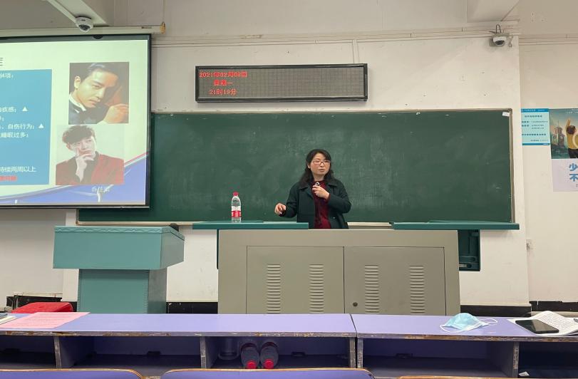 刘陈陵做心理健康教育培训。刘老师从心理疾病与自杀风险概况、预防干预对策、学生干部在危机干预中的作用等方面介绍了常见心理疾病类型及日常预防干预对策。鼓励学生骨干们要做好自我心理调节,并主动发挥作用,积极预防大学生心理疾病,投入到日常的预防干预中去,关心陪伴周围的同学。