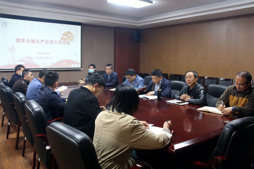 2021年3月31日下午,自动化学院召开全面从严治党工作会议。学院党委委员、纪委委员,三级单位负责人,支部书记和纪检委员参加会议。会议由院党委书记董浩斌主持。