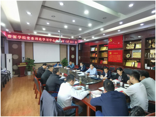 4月23日上午,资源学院党委理论学习中心组召开扩大会议,集体学习《中国共产党普通高等学校基层组织工作条例》和《党委(党组)落实全面从严治党主体责任规定》等精神,纵深推进全面从严治党。学院领导班子成员、三级单位党政主要负责人、全体辅导员参加学习,党委书记高复阳主持学习会议。